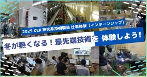 2024/12/24 令和6年度KEK技術交流会「加速器科学を拓く技術力」を開催 高エネルギー加速機研究機構の技術職員は異なる分野の研究を展開する研究所、研究施設に所属しています。 技術部門では、これらの異なる分野の技術職員が相互の理解を深めるために技術交流会を開催しています。令和6年度も11月20日 […] 続きを読む