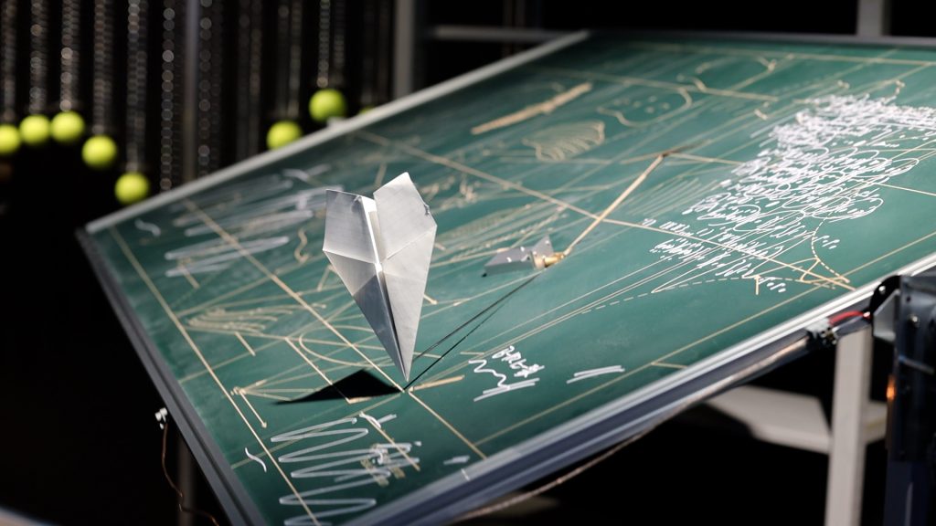 片岡純也+岩竹理恵「KEK曲解模型群」より《すり抜ける紙飛行機》 2017/2025年